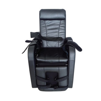 醒酒椅由扶手、束缚带、拉动开关、靠背、座体、靠脚板组成。既可作为普通椅,也可通过束缚带对人的腿部、胸部、手臂进行固定,使人行为受到约束,是有效防止醉酒人员在意识不清醒的情况下闹事,也可作为公安干警处理柔性事件的约束性器械。