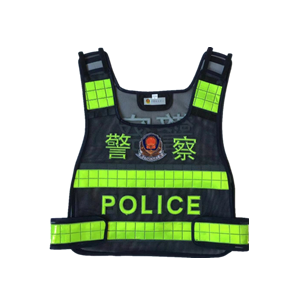 1、材质颜色:基底网眼布为黑色,颜色符合07式武警常服颜色;反光带为黄色(潘通色卡:396U);反光带印字为黑色。