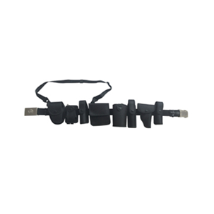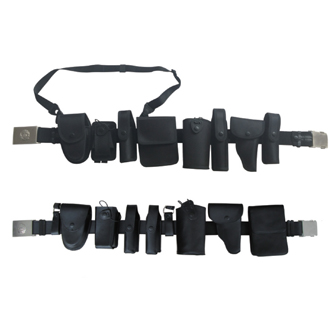 腰带由腰带钎子,带体,斜挂带和八个装具套(手铐套,对讲机套,强光手电套,警用工作包,警用水壶套,警棍套,催泪喷射套,枪套。除枪套外,其他可单独拆卸)组成。