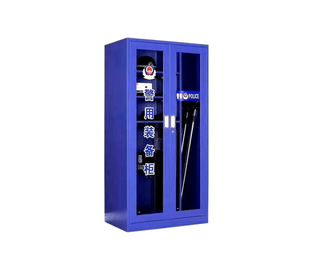 1、警用装备柜采用0.7mm厚度的镀锌钢板焊接,外喷环氧树脂;标准双门长窗设计,便于识别存放在橱柜中的设备;紧急情况下,可以直接从橱柜设备上打碎玻璃。T型框架结构,可存放更多物品;