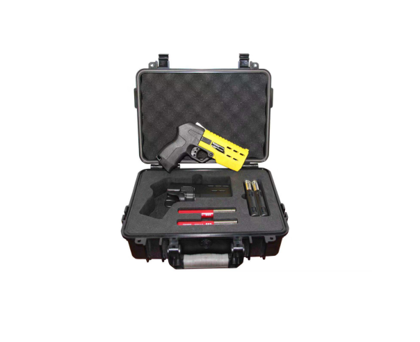 高速催泪器是一种非常安全、有效的远程防卫武器。可广泛应用于反恐、抓捕、安保、武装押运、治安维护、个人防卫等领域。其使用的天然辣椒素喷射剂,具有强烈的刺激作用。使被控制者立即丧失抵抗能力,对酗酒、吸毒,闹事者同样有出色的制服效果。一次可喷射12毫升喷射剂,形成高速液体射流,最远射程可达7米,高速射流使目标人物无法闪避,且不受风力风向的影响。