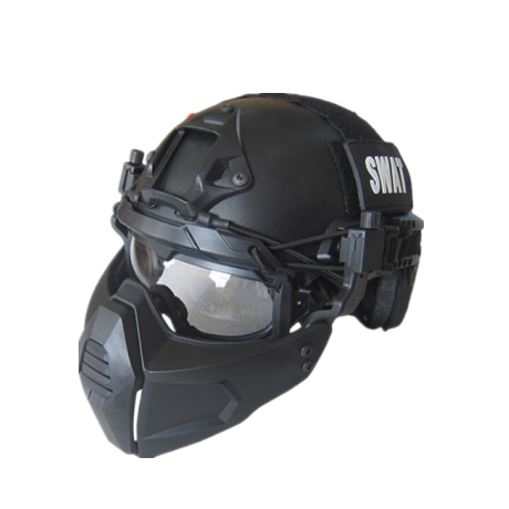 战术防暴头盔采用战术导轨设计,可根据使用场景自行加装战术配件,盔体采用高强度ABS材料制作而成,具有重量轻强度高等特点,适合公安、武警、特警等部门执勤或训练使用。